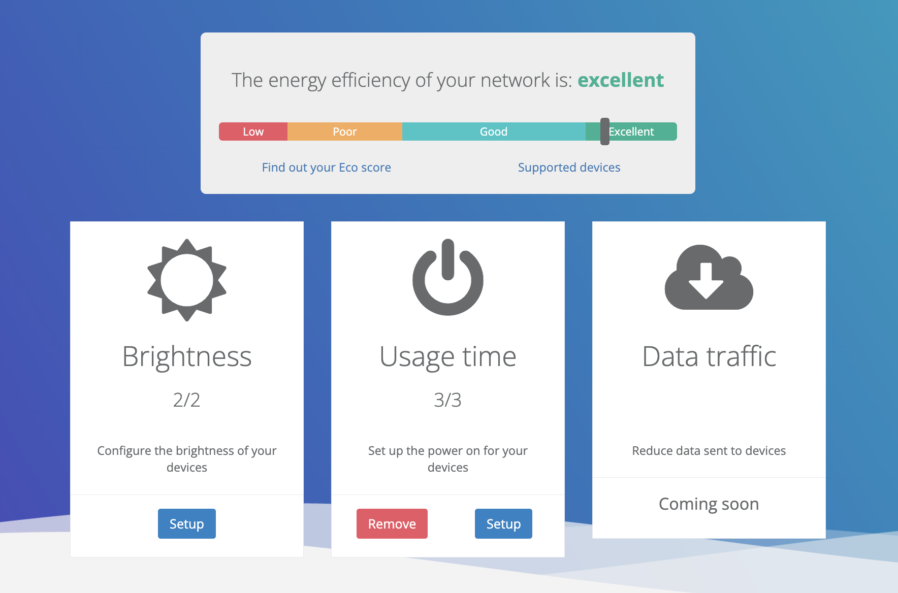 At the top, you’ll find the “Your network’s energy efficiency” box, with a bar ranging from Low to Excellent.